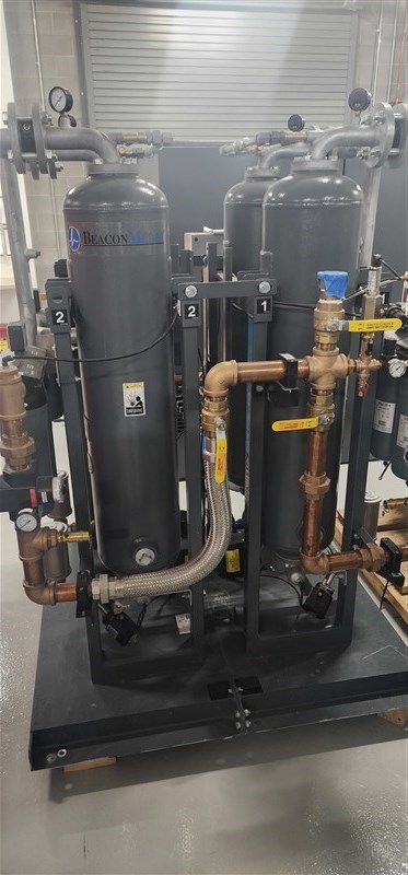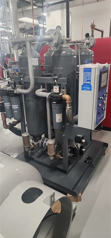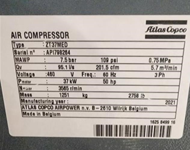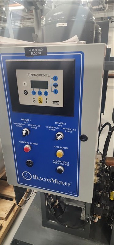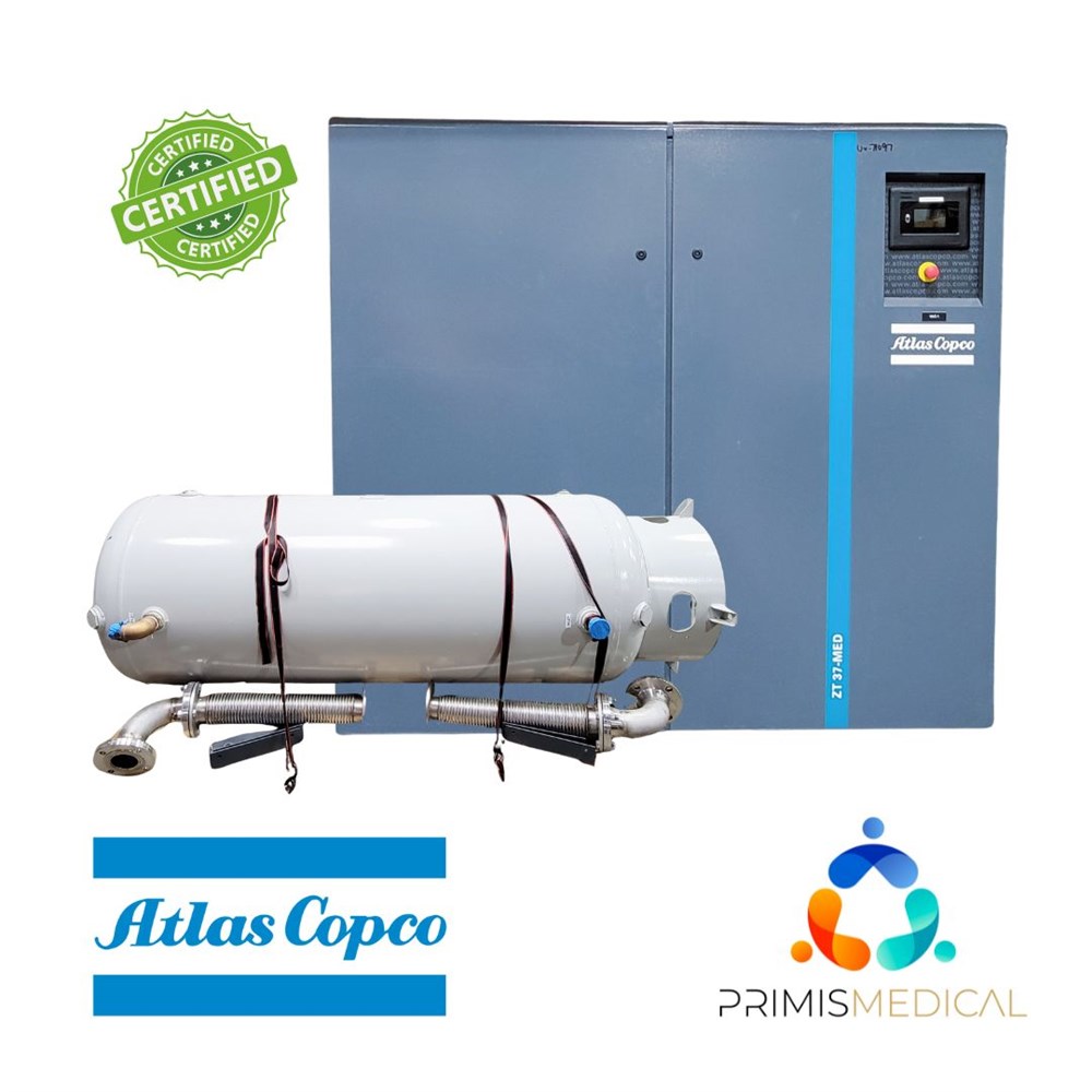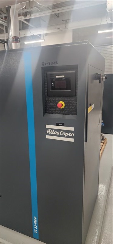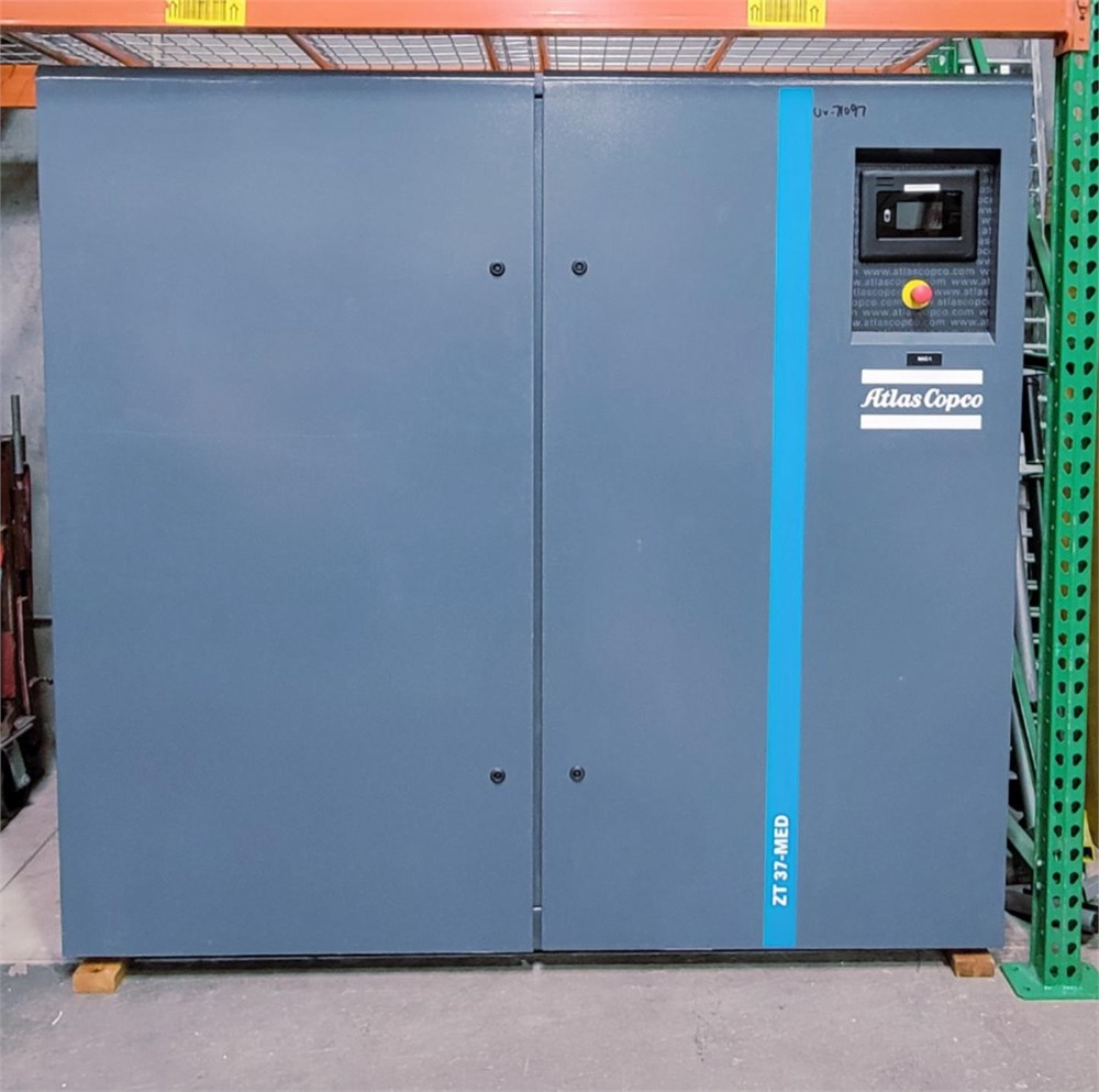 Atlas Copco ZT 37-MED compressor system includes 2 ZT 37-MED Compressors, Tank and a stand alone Beacon Medes ZT DES Dryer. This is an oil-free rotary tooth air compressor system designed for medical or specialty applications where high air purity is critical. It is part of the ZT-MED series which caters to higher flow rate needs while maintaining oil-free operation and energy efficiency. This unit was used for 2 months and replaced by thee facility due to it being oversized for the application. It was professionally deinstalled and is staged ready to ship.