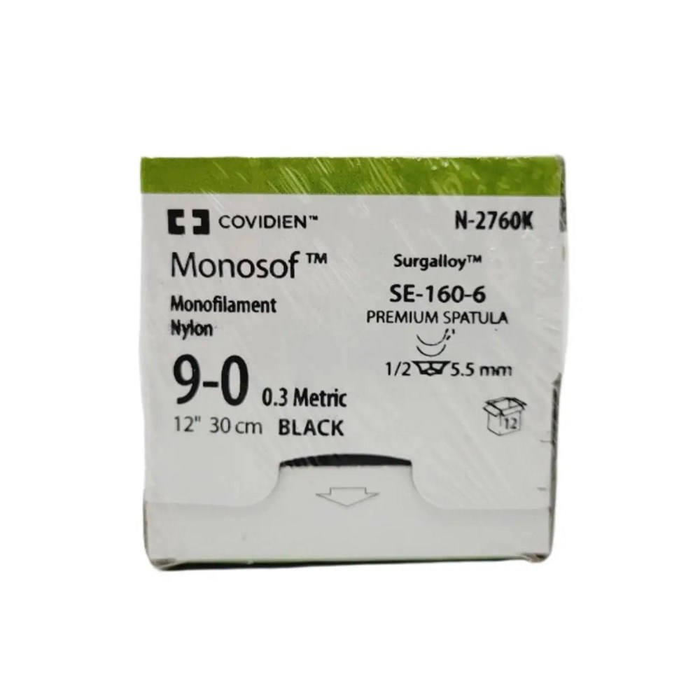 Covidien N-2760K Monosof 9-0 1X12" SE-160-6 Monofilament BX/12