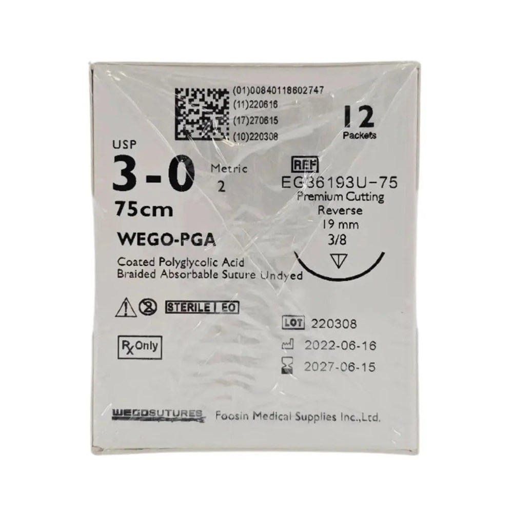 The EG36193U-75 WEGO-PGA suture is part of Endure’s line of absorbable polyglycolic acid (PGA) sutures, marketed under the WeSuture brand. As a size 3-0 suture, it is suited for tissue closures that require moderate strength during the early healing period. The undyed (natural) form reduces the risk of cosmetic discoloration, which may be particularly advantageous in superficial or visible closures. The 75 cm length allows extended reach for deeper closures without needing to join sutures.