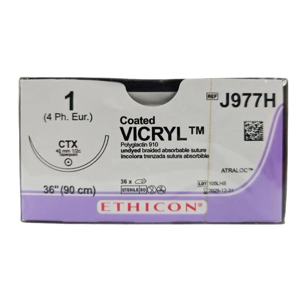 Ethicon J977H 1 Coated VICRYL 1X36" CTX 48mm ATRALOC BX/36