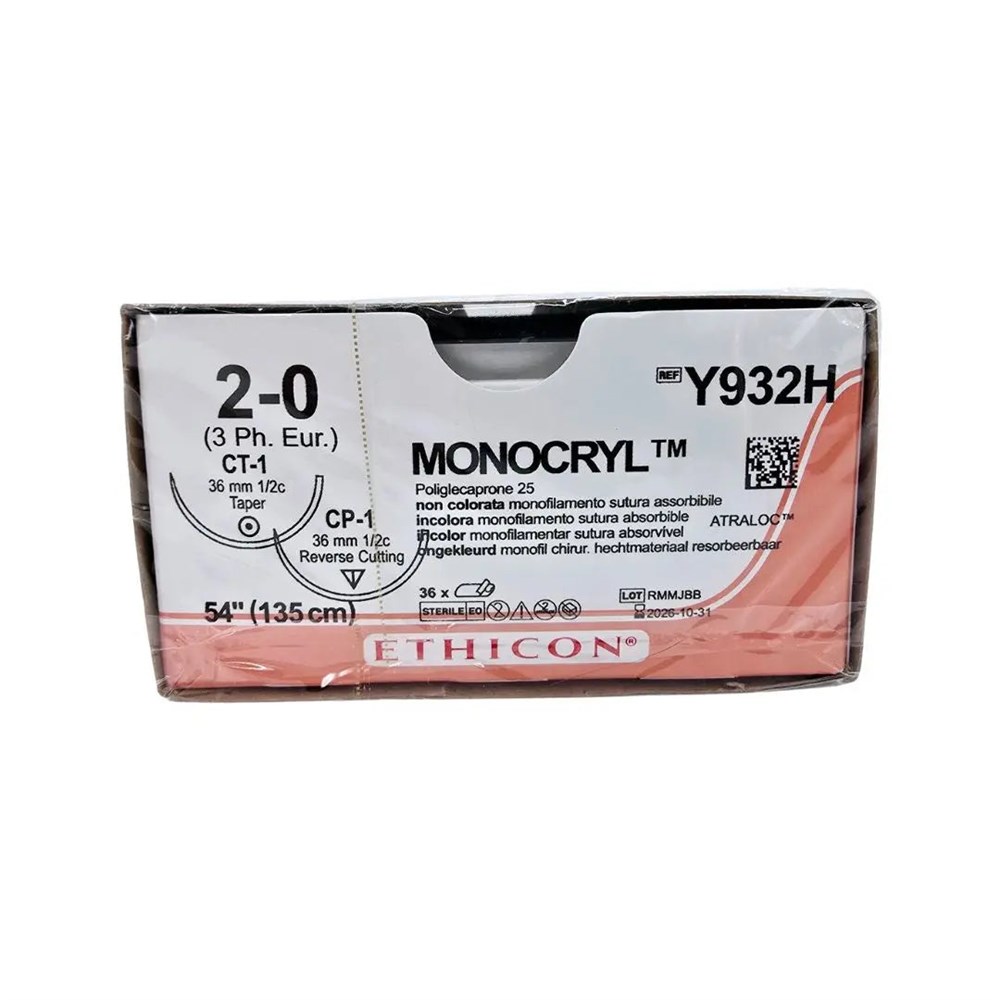 Ethicon Y932H 2-0 MONOCRYL UNDYED 1X54" CP-1,CT-1 DOUBLE ARMED Box of 36